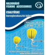A Horogbeakasztó füllel kombinált csalitüske, használatával kiküszöbölhető a csalitüske kötésével való bajlódás! Ebben a termékben a jól bevált csalitüskénket kombináltuk egy 8-as formájú szilikon adapterrel. Ennek egyik vége a csalitüske gyűrűjébe csatlakozik, míg a felső szabadon áll egy lyukkal a közepén. Ezt a praktikus kis eszközt csupán rá kell húzni a horog szárára, s máris kész komplett csalitüskés előke, melyet már csak fel kell csalizni!