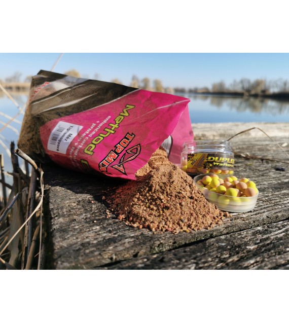 A Top Mix Duplex wafters termékcsalád tagjai azoknak a feeder horgászoknak készültek, akik szeretik az attraktív oldódó csalikat. Kikönnyített pelletek, de épp csak annyira, hogy fine tüske mellett #14 horgokkal is használhatók legyenek a legkisebb, 8-as méretek. 8mm, 10mm és 12mm méretekben kapható minden íz. Oldódási képessége intenzív, "nyitott csali", hogy az aroma mellett beltartalmi értéke is csalogassa az oda tévedő halakat. Dupla színösszeállítás mellett ugyanazzal a csalival különböző fényviszonyok mellett is horgászhatunk, egyszerűen a másik oldalról tűzzük fel a csalinkat, máris más tónusú, de ugyanolyan színvilágú csalink lesz a horog mellett.