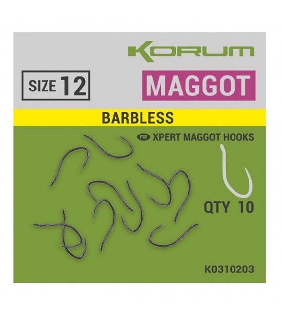 Korum XPERT MAGGOT BARBLESS HOOKS - SIZE 12