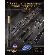 A tovább fejlesztett Stradivari method feeder II botok az elődjeikhez képest nagy különbséget nem mutatnak, mégis pár apró részletben magasabb minőséget képviselnek. A botok anyaga magas minőségű 40T carbon lett. Változott a nyélkialakítás formája is, ergonomikusabb lett. A felhasznált anyag kiváló tulajdonságai teszik a botot könnyűvé, feszessé és nagyon kezessé. A botok kialakításánál nagy figyelmet fordítottunk arra, hogy élmény legyen vele a horgászat, minimálisra csökkenjen a halvesztés lehetősége. A botoknak van elejük a fárasztáshoz, megfelelően erős gerincük a pontos és a hosszabbaknál a nagy távolságú dobásokhoz. Kategóriájukban a legkönnyebbek közé tartoznak, így kényelmessé teszik a horgászatot. A legfinomabb 3,30 és 3,60-as botok egytalpas emelt, míg az erősebb 3,90 és 4,20-as kéttalpas, a mai elvárásnak megfelelő magas minőségű SeaGuide Zirconia gyűrűkkel szereltek. A botok felülete nyerscarbon , míg a feliratok alatt fényes lakk kiképzést kapott. A nyél hossza kényelmes botkezelést, míg anyaguk, EVA és parafa kombinációja, kellemes fogást biztosít. A nyélen természetesen horogakasztó is található. A spiccek hármas támaszú spiccgyűrűket kaptak, így nem hajolnak el és dobáskor is kisebb lesz a felcsavarodás, ezzel együtt pedig a spicctörés lehetősége.