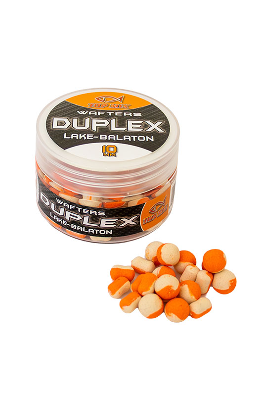 A Top Mix Duplex wafters termékcsalád tagjai azoknak a feeder horgászoknak készültek, akik szeretik az attraktív oldódó csalikat. Kikönnyített pelletek, de épp csak annyira, hogy fine tüske mellett #14 horgokkal is használhatók legyenek a legkisebb, 8-as méretek. 8mm, 10mm és 12mm méretekben kapható minden íz. Oldódási képessége intenzív, "nyitott csali", hogy az aroma mellett beltartalmi értéke is csalogassa az oda tévedő halakat. Dupla színösszeállítás mellett ugyanazzal a csalival különböző fényviszonyok mellett is horgászhatunk, egyszerűen a másik oldalról tűzzük fel a csalinkat, máris más tónusú, de ugyanolyan színvilágú csalink lesz a horog mellett.