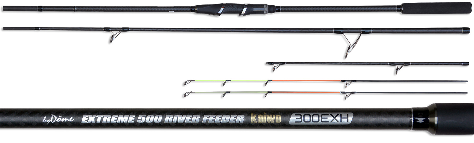 A By Döme EXTREME 500 RIVER FEEDER Kaiwo botcsalád három méretben kerül forgalomba. Ezek 300, 360 és 395 cm hosszúságúak. A legrövidebb tag ideális fás területen, vagy éppen meredek kőszóráson történő horgászathoz. A középső méret általános horgászathoz való, míg a leghosszabb tag a távolabbi dobások kivitelezésekor lehet hasznos társ!