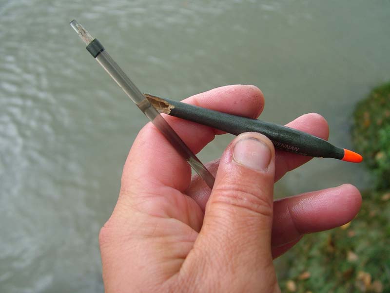 A dévért követően újra kellett szerelnem, mivel a reggeli kapkodásban nem találtam megfelelő méretű szilikongyűrűt, így a sticket csak két szilikon karikával rögzítettem, és sajnos a bevágást követően középen eltörött. Hiányzott a középső, úgymond, támasztópillér. Remélem, hogy mások az én hibámból tanulnak. A stick úszót minimum három rögzítési ponttal kell felszerelni a zsinórra.