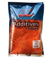 Különleges és egyedülálló adalékok ezek a flou színű morzsák. Rendkívül élénk színüknek és nagyon finom édes ízüknek köszönhetően kiváló csalogató hatást biztosítanak. Még zavarosabb, sötétebb vizekben is láthatók a szemcsék, fokozva az ízhatást a láthatóság hatásával. A tesztek során egyértelműen kiderült, hogy feltűnő színük ellenére nem riasztják a halakat, hanem kíváncsiságukat fokozva, növelik az etetőanyag hatékonyságát.