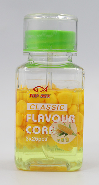 A TOP MIX MagicCorn kukorica imitáció (gumikukorica) olyan tulajdonságokkal rendelkezik, amelyek jó csali felkínálás esetén ellenállhatatlanná teszik azt a halak számára. Megtévesztő hasonlóság az igazi konzerv kukoricához, kitűnő lebegő képesség és intenzív íz jellemzi ezt a terméket. Az íze és aromája egyedül álló, ezen felül egy praktikus tégelyben van, amiből egy kis kanál segítségével szedhető ki a 3 x 25db kukoricaszem. Nem koszoljuk ezáltal sem az üvegben lévő szemeket, sem az aromát. A tégelyben 3 méretű kukorica szem található, közepes (M) méret jellemzően a dobozos kukorica mérete, a nagyobb méret (L) az apróbb halak szelektálására szolgálhat, a kicsi méret (S) pedig igazi versenyméret, amelyet akkor használunk, ha halat akarunk fogni, mérettől függetlenül. A legcélszerűbb és legtartósabb felkínálási mód a TOP MIX Csalitüske, illetve az S méretűnél a Fine Csalitüske. Ezt használva egy csalival akár több tucat halat is megfoghatunk, ha nem veszítjük el. Ha még nagyobb csalira van szükségünk, akár kettő szemet is feltűzhetünk a megfelelő méretű csalitüskére. A horgászat végén célszerű a csalit ismét visszatenni a tégelybe, hogy újra feltöltődjön, magába szívja az egyedi aromát. Így egy kis tégely, akár egy szezonra is elegendő lehet! Különösen alkalmas a pontyos method-feeder technikához, ahol a MagicCorn minden előnyét maradéktalanul ki tudjuk használni. Rugalmas, szívós csali, amely további előnye, hogy nem sérülékeny és nem tudják az apró halak sem szétszedni. Hat nyerő ízben (Édeskukorica, Méz, Eper, Ananász, Fokhagyma, Csoki-Narancs) kerül forgalomba.