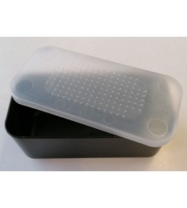 Minőségi kivitelű 16x16 cm méretű szitaszövet aljú csalisdobozok, tetővel, csontkukac és giliszta tárolásához. A dobozok belső falán térfogat skálával literben és pint-ben. Ez versenyeken a limit ellenőrzésnél szükséges. A dobozokban a nyári melegben is biztonságosan tárolhatók a csalik, nem tudnak befulladni.