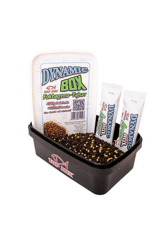 A Dynamic Box-ban halas, tehát fehérjedús és szénhidrátban gazdag pelletek speciális keveréke található, a 400g pellet keverék horgászathoz való előkészítéséhez szükséges 100ml aroma mennyiséggel. Az aroma tasakot kibontva, annak tartalmát rá kell önteni a pelletre, majd jól összerázni és 10-15 percet állni hagyni. A keverék ezután használható, kosárba tölthető.