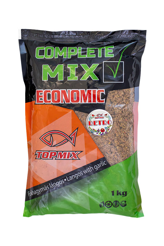 A méltán népszerű ECONOMIC termékcsalád továbbgondolt, továbbfejlesztett változata. Ezeket az etetőanyagokat már nedvesíteni sem kell, horgászatra kész állapotban kerülnek csomagolásra. Az idősebb korosztály talán még emlékszik erre az etetőanyag típusra, hisz jó néhány évvel ezelőtt már előre nedvesített, azonnal használható "COMPLETE MIX"-et adtunk a horgászok kezébe.  Erre azonban az akkori horgász kultúra még nem volt befogadó képes, és bár sokan kedvelték, az átütő sikere elmaradt. Azonban a fejlődést látva, tapasztalva úgy döntöttünk, hogy levesszük a polcról a régi receptet és elkészítjük a négy legkedveltebb ECONOMIC etetőnk készre kevert, előre nedvesített, COMPLETE MIX változatát és így is a horgászok kezébe adjuk azokat. Horgászat megkezdése előtt nincs más teendőnk, mint a zacskót kibontani, és már tölthető is a kosárba! Átrostálva tovább javítható az egyenletesen oldódó képessége! Tíz féle ízesítésű terméket tettünk ebbe a termékcsaládba: Eper-Málna, Méz, Vanília, Ponty-Kárász F1, Black Halibut, Amúr, Vajsav, Cherry, Pálinka Az ECONOMIC COMPLETE MIX etetőanyag azonnali használatra kész állapotban van a zacskóban, további nedvesítése nem szükséges! Természetesen más etetőanyagokkal, vagy adalékokkal (micro pelletek, magvak) kiválóan keverhető.