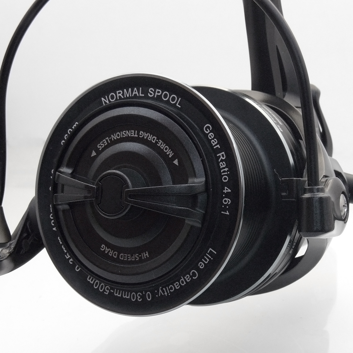 A nagyméretű távdobó kialakítású dob hosszú, egyenes zsinórlefutást biztosít, ami kézzelfogható plusz métereket jelent. Ezen megtalálható egy fém, lekerekített zsinórklipsz. Az orsóhoz tartozó Normal dob 500 méter 0,30 mm vastag zsinórral tölthető fel. De ezen felül az orsóhoz külön jár egy Deep pótdob, amelynek zsinórkapacitása jelentősen megnövelt. Erre a dobra 880 méter 0,30 mm vastag zsinór tölthető.